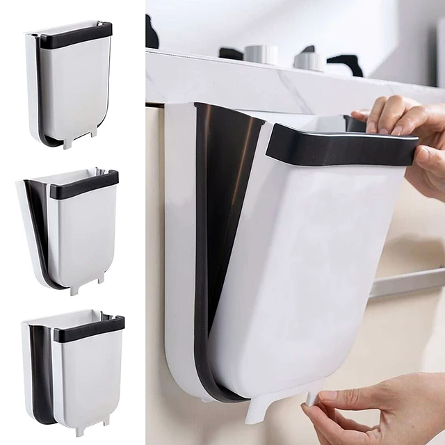 Simplifica tu rutina con nuestro Basurero Plegable, se cuelga fácilmente justo donde lo necesitas.